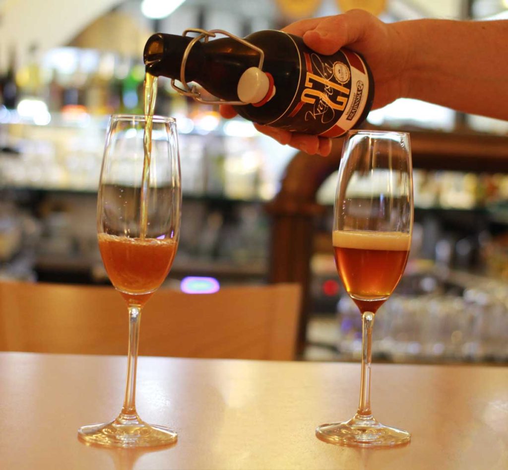 Dozrávají v otevřené spilce, kam můžete přes okno nahlédnout, když procházíte do naší restaurace. Následně piva zrají v ležáckých tancích.